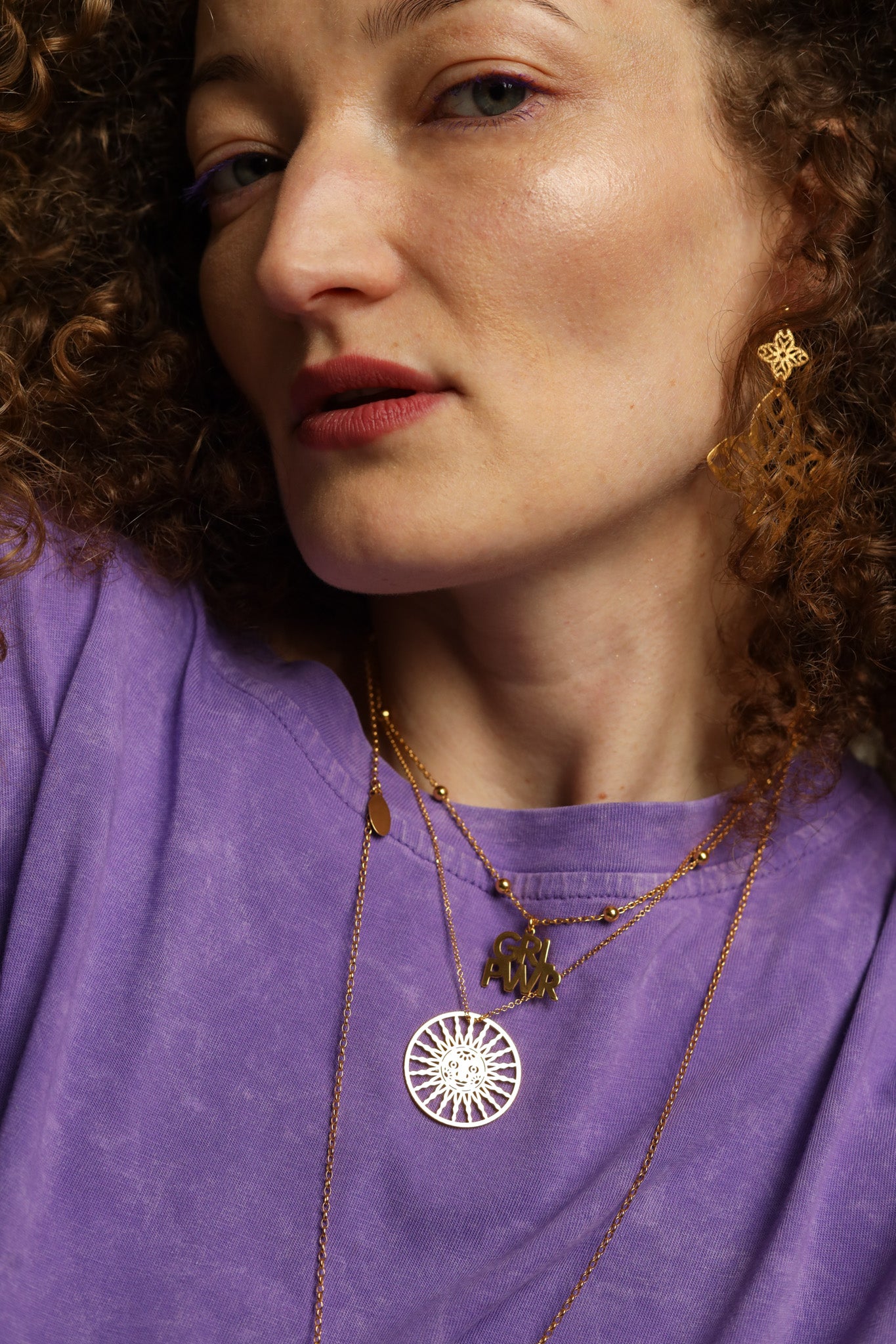 Delikatny naszyjnik z zawieszką w kształcie pięknego, meksykańskiego słońca. Powstał na pamiątkę podróży po Meksyku, z której przywiozłam mnóstwo inspiracji i niepowtarzalnego klimatu i słońca w sercu.